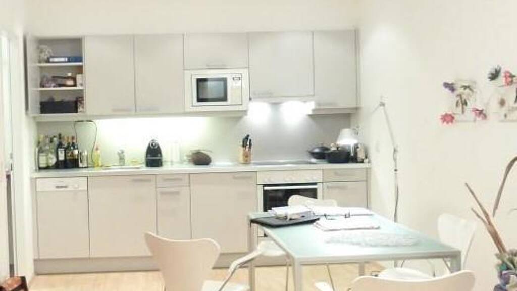 Die Wohnung befindet sich im 6. Obergeschoss (kein Fenster straßenseitig) und verügt über ein großes Wohnzimmer mit einer modernen Markenküche und Schlafbereich bzw. ein Schlafzimmer (je nach Wunsch kann eine Wand aufgestellt werden), ein Badezimmer mit Badewanne und Waschmaschinenanschluss, ein separates WC mit kleinem Waschbecken und einen großen Vorraum.
