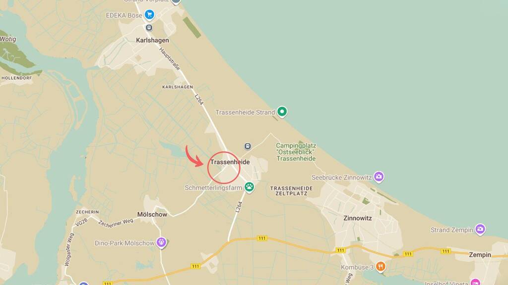 Trassenheide zählt zu den aufstrebenden Orten der Region und bietet neben viel unberührten Charme eine gute Infrastruktur mit Einkaufsmöglichkeiten, Gastronomie und einem Bahnhof in fußläufiger Nähe. Durch die gute Anbindung an die B111 und den Regionalbahnanschluss sind auch die Nachbarorte wie Zinnowitz, Karlshagen oder Heringsdorf schnell erreicht.