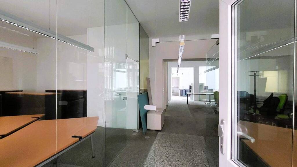 . Derzeit 2 Einheiten: Büro 1 mit ca. 137m², sowie einer vollausgestatteten Kleinwohnung von ca. 45m² die entsprechend der Widmung