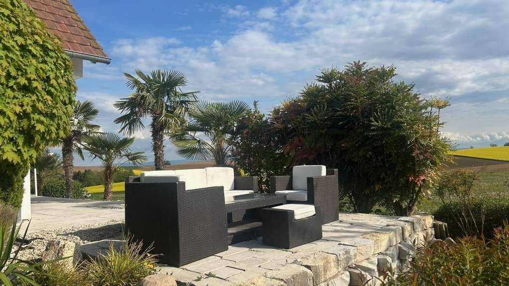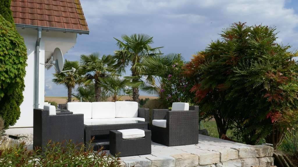 Mit Pool, Palmen und herrlichem Fernblick - sehr schönes Landhaus in ruhiger Randlage, Bj. 1993, laufend renoviert und modernisiert, beste Wärmedämmung (Energieklasse C), ca. 122 m² Wohnfläche (Bodenfläche ca. 150 m²), schöne Raumaufteilung, helle und freundliche Räume, voll unterkellert mit Hauswirtschaftsraum und Garage, separater Außenstellplatz, ca. 700 m² Grundstück, komplett eingezäunt, mediterran angelegt mit schönem Außenpool und großen Garten-Terrassen, fast nicht einsehbar EG: Entrée mit Garderobe und Bodenfliesen, großzügiger Wohn-/Essbereich, ca. 50 m² mit schönem Pellets Heizkamin, hochwertigen Bodenfliesen und Zugang zur großen Pool-Terrasse, offen zur modernen Einbauküche mit Kochinsel und mit Zugang zur Garten-Terrasse, Büro/Gästezimmer mit Parkettboden, Gäste-WC mit Dusche OG: 2 große Schlafzimmer mit Parkettboden und Zugang zum Südbalkon, 1 weiteres Zimmer mit Parkettboden, großes Bad mit Wanne, Dusche und WC UG: komplett gefliest, mit Sauna, Hauswirtschaftsraum und großer Garage Absolut ruhige und sehr sonnige Randlage am Ende einer Sackgasse mit herrlichem Fernblick, kein Durchgangsverkehr, ca. 15 Minuten ab Wissembourg, ab Lauterbourg bzw. ab Grenze Rastatt/Baden-Baden, ca. 30 Minuten ab Strasbourg Moderner Kaminofen (Pellets) im Wohn-/Essbereich, zusätzlich Elektro-Heizung, PVC-Fenster mit Iso-Verglasung und Klappläden, hochwertige Bodenfliesen bzw. Parkettböden, moderne Einbauküche, schöne Bäder Sonstiges Raum Lauterbourg-Seltz Elsass (Frankreich) Ein schönes Anwesen in bester Wohnlage, ideal auch als Alterssitz, deutschsprachiges Gebiet! Maklerzulassung für Frankreich: Carte-Professionelle Nr. CPI 6701 2016 000 014 943 Vorstehende Angaben ohne Gewähr. Zwischenverkauf vorbehalten