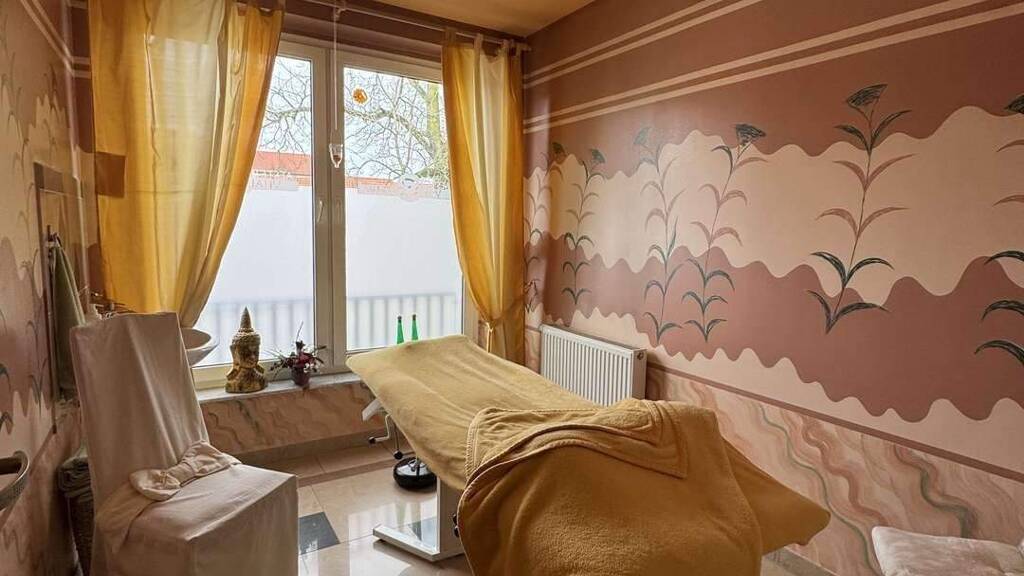 Zur Verfügung stehen mehrere individuell gestaltete Behandlungsräume, Wartebereiche, Ruheräume sowie eine Anmeldung im Untergeschoss. Ergänzt wird das Raumangebot durch eine voll ausgestattete Küche, einen Aufenthaltsraum und Umkleidemöglichkeiten. Sämtliche Räume sind fachgerecht ausgestattet, inklusive Waschbecken, Waschmaschine sowie vorhandener Liegen und kosmetischer Geräte, die nach Absprache genutzt werden können.