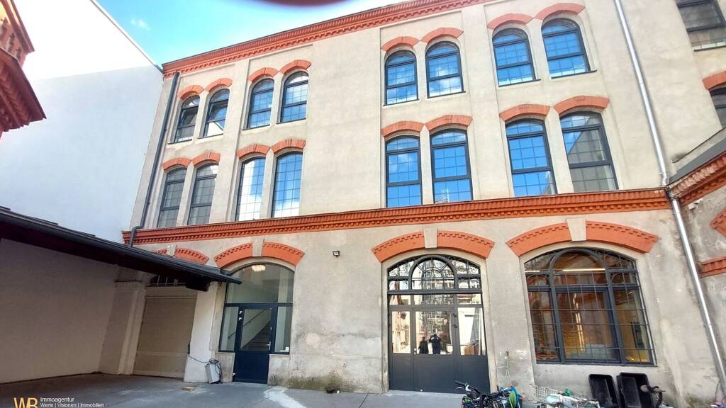 + Das erste Obergeschoß im dreigeschoßigen Osttrakt ist Absolute Ruhelage und sonnig ! Diese 145m² werden als Büro/Atelier mitvermietet. Hier liegt die Raumhöhe bei 360cm. Ein Lastenaufzug verbindet die Geschoße - zusätzlich zum Stiegenhaus. Auch hier ist alles hervorragend saniert: Fußbodenheizung, 3fach-Isolierglas, neue Küche.