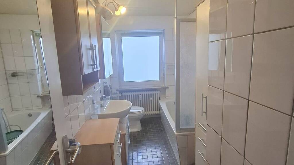 - 3-Zimmer-Wohnung mit ca. 70 m² Wohnfläche - 3. Etage eines Mehrfamilienhauses - 1 Wohnzimmer mit Zugang zum Süd-Balkon - 2 Schlafzimmer mit optimaler Raumaufteilung - Küche mit Einbauküche inklusive Elektrogeräten - 1 Badezimmer mit Badewanne - Waschmaschinenanschluss muss gelegt werden - 1 Kellerabteil zur privaten Nutzung vorhanden - 1 Gemeinschaftswaschkeller mit Münzeinwurf - 1 Fahrradraum für Bewohner vorhanden - Gemeinschaftsgarten - Energieeffizienzklasse A - Zentralheizung Öl