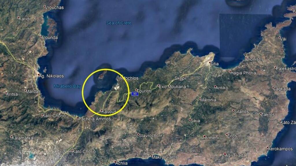 Dieses Grundstück liegt wunderschön in erster Meereslinie auf der Ostseite der Mirabello-Bucht im Nordosten Kretas.