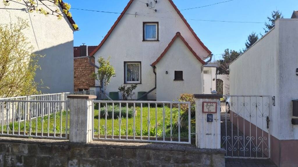 Verkauft werden ein Einfamilienhaus mit 4 Zimmern auf einem großen Grundstück sowie eine Wohnung mit 2 Zimmern in einem Anbau eines zweiten Gebäudes. Die Situation: Das Flurstück 1984 war ehedem größer, bis ein zweites Haus gebaut und das Grundstück geteilt wurde. Neben dem Haupthaus (Am Teich 5), das hier mit Grundstück verkauft wird, steht nun ein zweites Haus (Am Teich 5a, separater Besitzer) Der Anbau (1960) des letztgenannten ragt in das Grundstück Am Teich 5 hinein (siehe Liegenschaftskarte). Dieser Anbau verfügt im OG über die genannte separate Wohnung mit eigenem Bad und Küche. Das Wegerecht ist gut geregelt.
