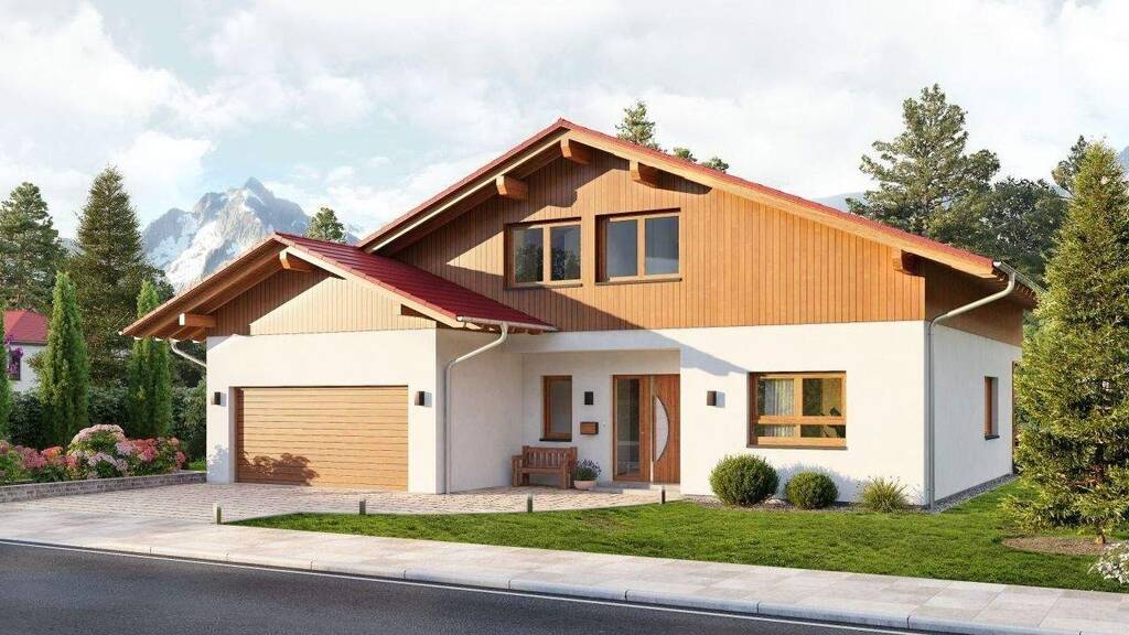 Unter dem formschönen Satteldach punktet dieses Einfamilienhaus mit viel Raum zum Wohlfühlen. Im Erdgeschoss bietet der lichtdurchflutete Wohnbereich mit seinen fast 40 m² ausreichend Platz zum Verweilen in behaglicher Atmosphäre und einen direkten Zugang zur Terrasse. In der geschlossenen Küche können sich Kreative ungestört auf die Zubereitung kulinarischer Köstlichkeiten konzentrieren und in gemütlicher Umgebung des Esszimmers genießen. Vom großen Hauswirtschaftsraum lässt sich die Garage mit zwei Stellplätzen unmittelbar erreichen. Direkt am Eingangsbereich befindet sich ein kleines Gäste-WC, anschließend führt die zentralgelegene Treppe hoch ins Dachgeschoss. Geräumige Wohnfläche, separates Bad mit Dusche und WC, angeschlossene Ankleide und Zugang zur Dachterrasse: im Schlafzimmer sind alle Voraussetzungen für individuelles Wohlbefinden vorhanden. Zwei großzügige Kinderzimmer, ein weiteres Bad mit Wanne, Dusche und WC sowie ein Abstellraum runden den Landhauswohnstil der oberen Etage ab.