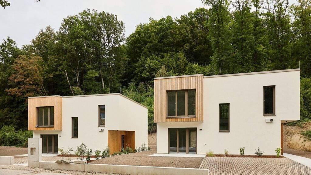 Holz ist der Baustoff der Zukunft: nachwachsend, CO?-speichernd, regional verfügbar. Der ökologische Fußabdruck dieser Häuser ist minimal - der Wohnkomfort maximal.