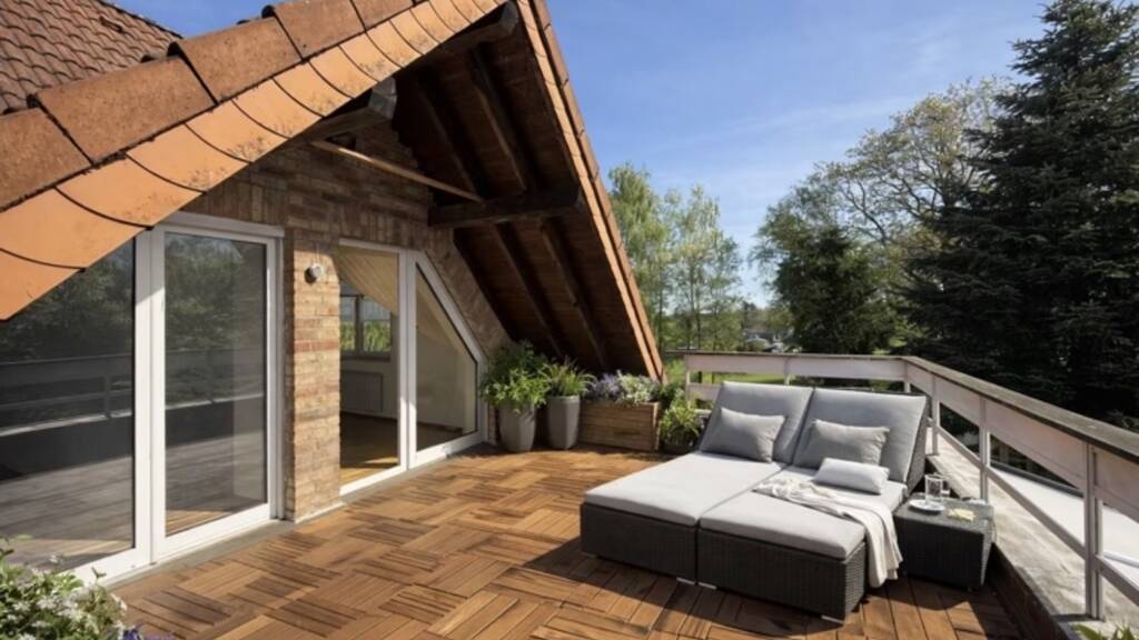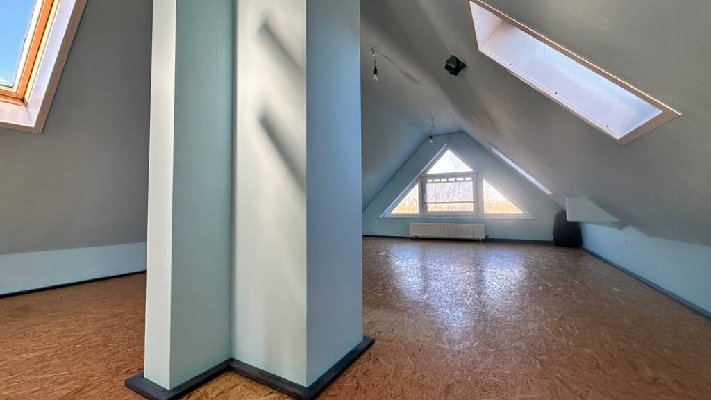 Auch hier setzt sich das großzügige Raumgefühl fort: ein Wohn- und Esszimmer mit Zugang zur Dachterrasse, eine separate Küche, ein Schlafzimmer, ein Kinderzimmer sowie ein Badezimmer. Zusätzlich steht ein ausgebautes Dachgeschosszimmer zur Verfügung.