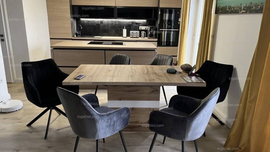 Die untere und mittlere Etage (ca. 70 qm pro Etage) haben ein Wohnzimmer mit amerikanischer Küche und eigenem Bad und 2-2 Schlafzimmer. Vom Erdgeschoss hat man Zugang zur Terrasse, die zum Pool führt (30 Nm), vom mittleren Stockwerk aus hat man Zugang zu zwei großen Balkonen (12 und 18 Nm) mit freiem Panoramablick auf den Plattensee und die umliegenden Berge.