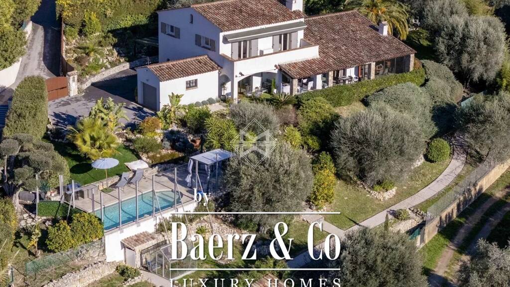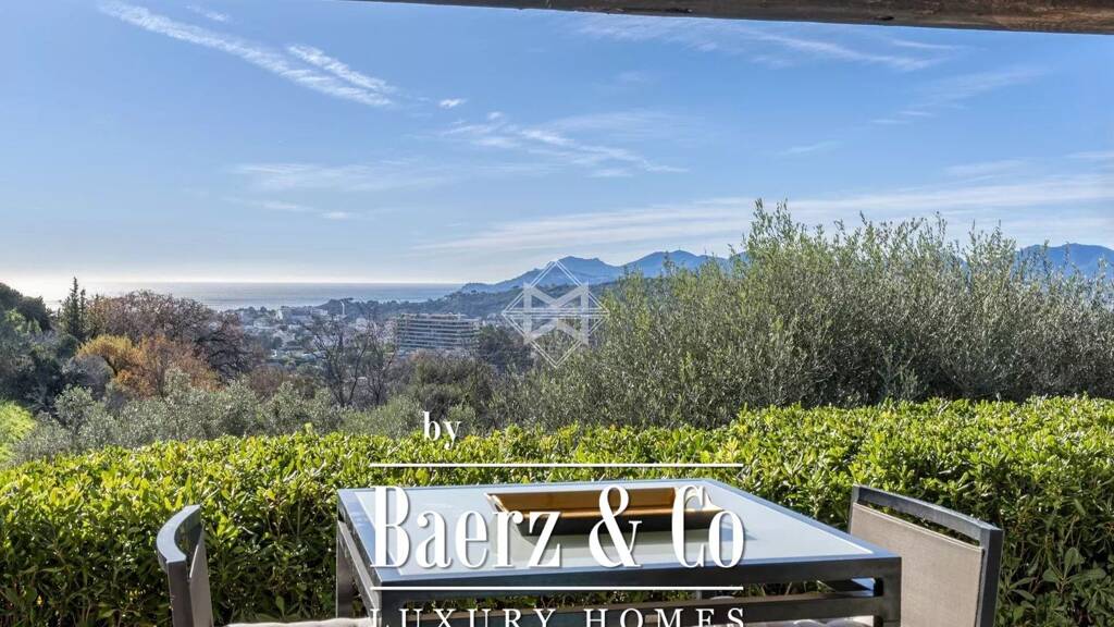 situated in a dominant position just a stone's throw from cannes, this charming 198 sqm villa enjoys a splendid panoramic view of the sea and the hills, offering its occupants sublime sunsets in shades of pink and orange over the estérel massif.