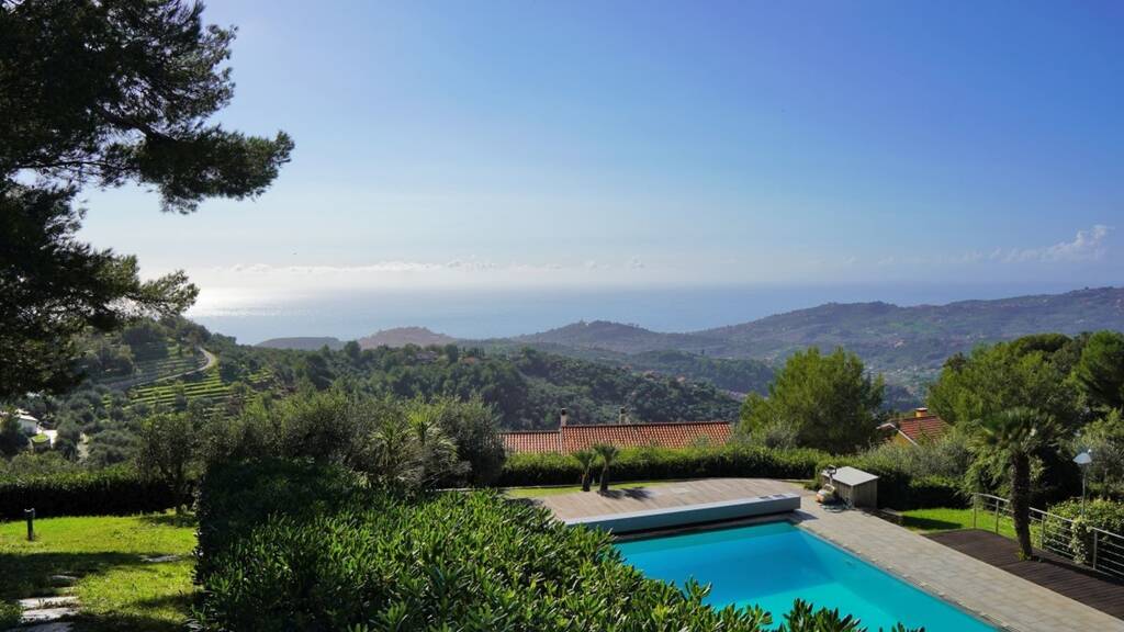Im schönen Hinterland von Imperia, nur 10 Minuten vom Herzen der Stadt und den bezaubernden Sandstränden entfernt, befindet sich diese spektakuläre Villa mit großen Terrassen, Privatpark, einem herrlichen Pool und atemberaubendem Meerblick zum Verkauf.