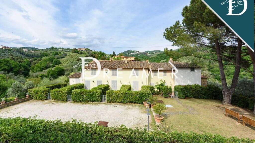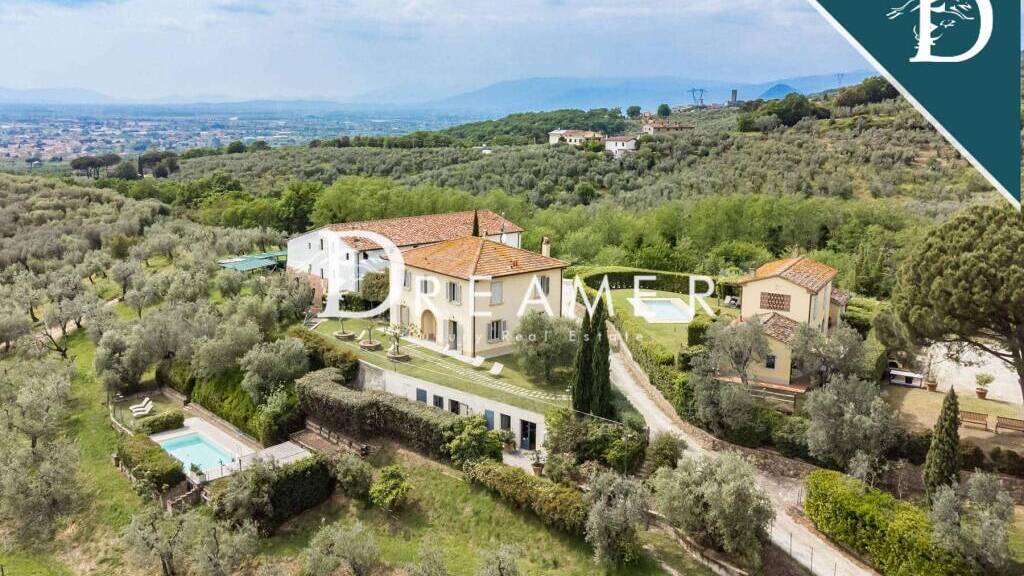 Enchanting Hamlet with Pools on the Tuscan Hills for sale. Consisting of 3 villas with gardens and 3 swimming pools. The property has a total surface area of approximately 850 sqm, plus approximately 900 sqm of building space. It's immersed in the green Tuscan hills, in a strategic area less than an hour from Florence, Lucca, and Pisa.