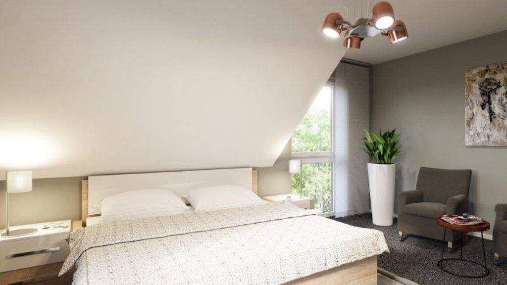 Dieses Einfamilienhaus, hier mit drittem Giebel versehen, ist das Aushängeschild zeitlos klassischer Architektur. Der dritte Giebel bringt nicht nur Platz, sondern auch zusätzliches Tageslicht in die Räume des Dachgeschosses. Ebenso reizvoll sind die offen gehaltenen und ineinanderfließenden Flächen von Kochen, Essen und Wohnen. Ein kompaktes Haus mit großer Raumwirkung, dafür steht das Wohnkonzept.