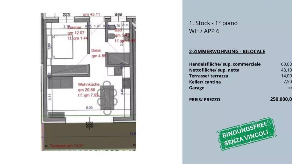 2 Zimmer  â€˘  60 m²  â€˘  1. Geschoss
