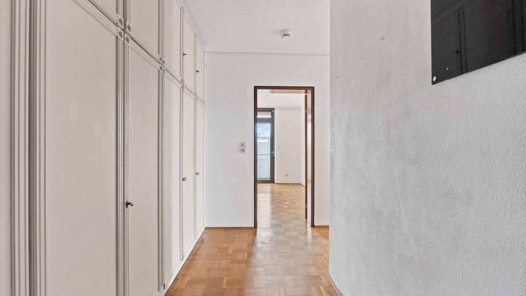 Hochwertiger Mosaikparkettboden erstreckt sich, mit Ausnahme der Küche und der Sanitärbereiche, durch die gesamte Wohneinheit. Ein Kellerabteil sowie ein Tiefgaragenstellplatz (zzgl. 25.000 EUR) runden dieses attraktive Angebot ab.