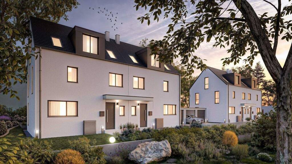 Auf einem Areal von knapp 1.000 qm sind zwei Doppelhäuser mit jeweils identischen Haushälften geplant. Jede Haushälfte verfügt über einen eigenen Grundstücksanteil (Realteilung). Alle Häuser sind in einem modernen Stil und abgestimmt aufeinander in zeitlosen anthrazit und weißen Farbtönen geplant, so dass die gesamte Häuserreihe als eine harmonische Einheit erscheint.