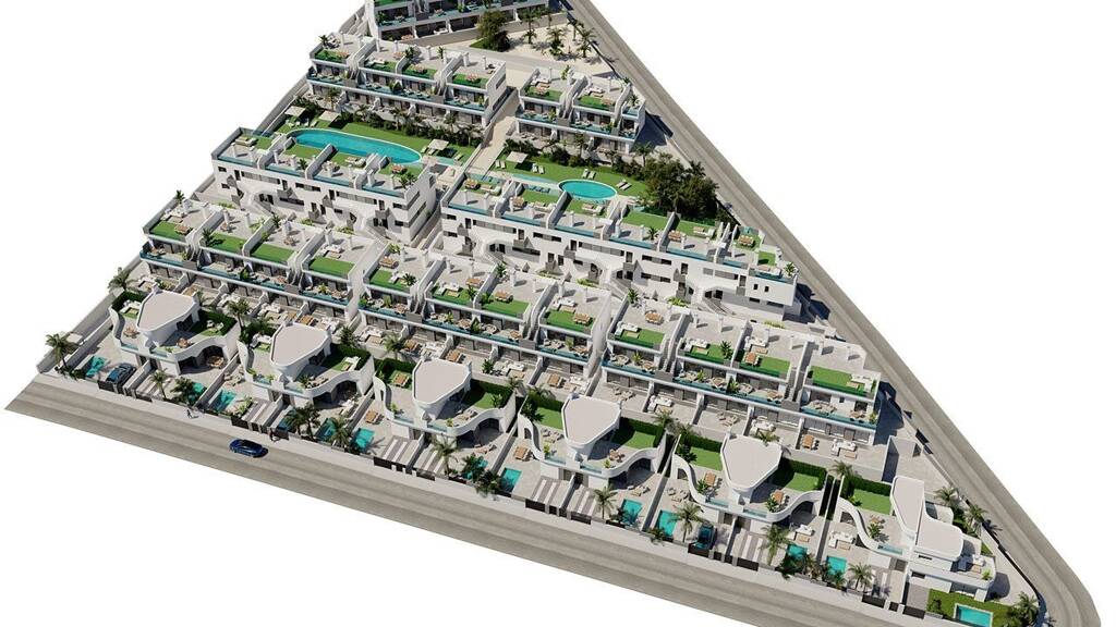 In dieser sehr schön und ruhig gelegenen abgeschlossenen Anlage entstehen Wohnungen mit 2 Schlafzimmern und 2 oder 3 Bädern und Doppelhaushälften mit 3 Schlafzimmern und 2 Bädern. Die Erdgeschoss-Wohnungen verfügen über einen Keller und großzügige Terrassen und die Obergeschoss-Wohnungen über private Dachterrassen. Und die Doppelhaushälften verfügen ebenfalls über private Dachterrassen und auch über einen Privatpool.
