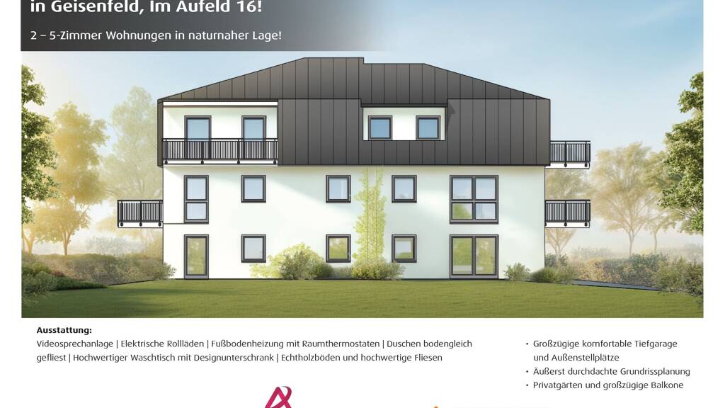Geisenfeld! 3,5-ZKB Dachgeschoss-Whg. mit 10,50 m² Ost-Balkon, Aufzug, Fußbodenheizung, elektrischen Rollläden, Videosprechanlage und TG-Stellplatz!