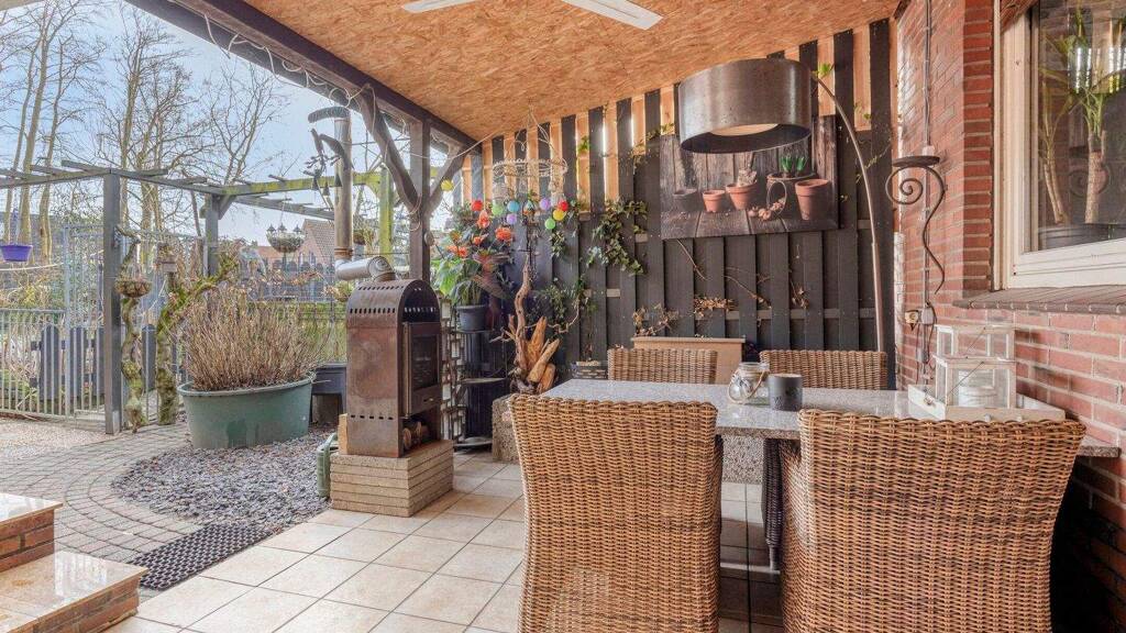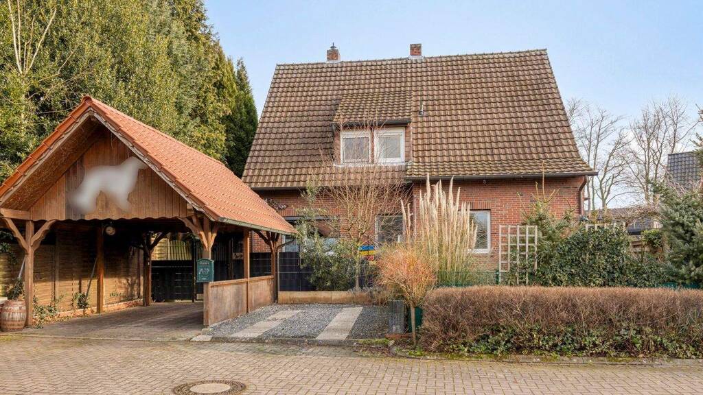 Willkommen in diesem freistehenden Einfamilienhaus, das Ruhe, Raum und praktische Wohnqualität auf angenehme Weise vereint. Die Immobilie befindet sich in einer ruhigen Wohnstraße im deutschen Neuenhaus und steht auf einem großzügigen Grundstück mit Garten rundum – hier genießen Sie sowohl im Innen- als auch im Außenbereich viel Freiheit. Das Haus wurde 1965 in solider Bauweise mit Satteldach errichtet und über die Jahre hinweg gepflegt instand gehalten. Dank der freistehenden Lage, einer Garage sowie Stellplätzen auf dem eigenen Grundstück eignet sich dieses Zuhause ideal für komfortables Familienwohnen. Der Garten bietet zu jeder Tageszeit sonnige wie schattige Plätze und ist praktisch mit einem rückwärtigen Zugang angelegt. Aufteilung Keller Vom zentralen Flur erreichbar. Der Keller ist in mehrere Räume unterteilt. Unten gelangen Sie in eine Diele mit Zugang zu Waschraum, Heizungsraum und Vorratsraum. Erdgeschoss Über den Eingang an der rechten Hausseite betreten Sie die zentrale Diele. Der Wohn- und Essbereich ist zum Garten ausgerichtet und überzeugt durch eine angenehme, helle Atmosphäre dank großer Fensterflächen. Die angrenzende Küche ist mit einer L-förmigen Einbauküche ausgestattet (Induktionskochfeld, Dunstabzug, Backofen und Geschirrspüler). Über die Außentür erreichen Sie direkt die überdachte Terrasse – ein wunderbarer Ort für gemeinsame Mahlzeiten im Freien. Im Erdgeschoss besteht die Möglichkeit zum Schlafen und Baden: Hier befinden sich ein großzügiges Schlafzimmer sowie ein weiteres, kleineres Zimmer. Das Badezimmer verfügt über eine freistehende Badewanne und ein Waschbecken mit Möbel. Zusätzlich gibt es ein separates Gäste-WC mit Wand-WC und Waschbecken. Obergeschoss Die Diele erschließt vier Schlafzimmer, von denen eines aktuell als Büro genutzt wird. Ein weiteres Zimmer dient als Durchgang zu einem zusätzlichen Raum – diese Etage bietet somit besonders viel Platz und flexible Nutzungsmöglichkeiten. Das einfache Badezimmer ist ausgestattet mit Duschkabine, Wand-WC und Waschbecken. Ein schönes Extra ist der Südbalkon, der direkt von der Diele aus zugänglich ist. Dachgeschoss Über eine feste Treppe erreichbar. Diese zusätzliche Ebene ist aufgeteilt in eine Diele und ein Schlaf- bzw. Hobbyzimmer – eine wertvolle Erweiterung des Wohnraums. Außenbereich Die Vorderseite des Grundstücks bietet ausreichend Stellplätze mit Carport und Zufahrt. Über den rückwärtigen Zugang sowie die überdachte Veranda gelangen Sie in den Gartenbereich. Hier befindet sich eine Garage mit zusätzlichem Kellerraum – ideal für Hobbyhandwerker. Zudem stehen zwei weitere Abstellräume zur Verfügung, angrenzend an einen Hundezwinger. Der hintere Grundstücksteil ist als Rasenfläche mit verschiedenen Obst- und Nussbäumen angelegt, darunter Birnen-, Pflaumen- und Walnussbaum – ein herrlicher, naturnaher Gartenbereich.