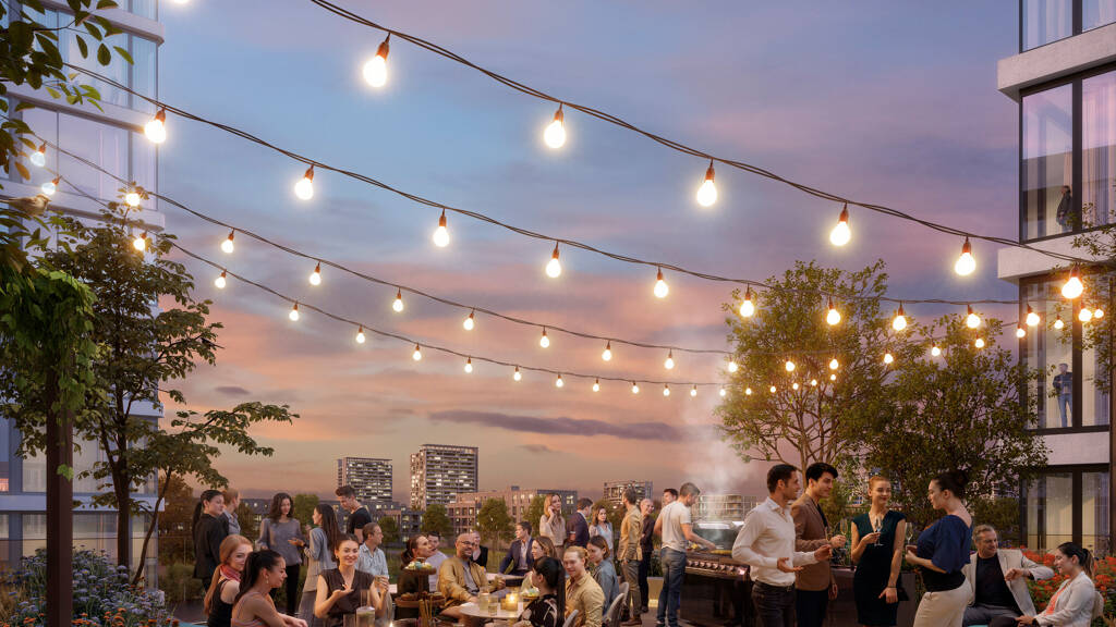 • 500 qm großer Dachgarten mit Terrassen im 1. OG • Gestaltung der Außenanlagen und der Dachgärten durch den internationalen Landschaftsarchitekten Rainer Schmidt • Staudengärten, bepflanzte Beete und ein Bambusteich mit Zen- Pavillon bieten ein Open-Air-Feeling für After Work Partys und Events • Grillbereich und Coffee-Bar für Come-together • Hochwertige Möblierung mit ausgesuchten Designermöbeln • Mietbereichseigene Sonnenterrasse im 3. OG • Dachgarten mit Terrasse im 7. OG mit Blick auf die Alpen • Intensive Dachbegrünung mit Kräutergärten und Insektenhotels • Photovoltaik-Anlage und Zisternen zur Regenwasserspeicherung