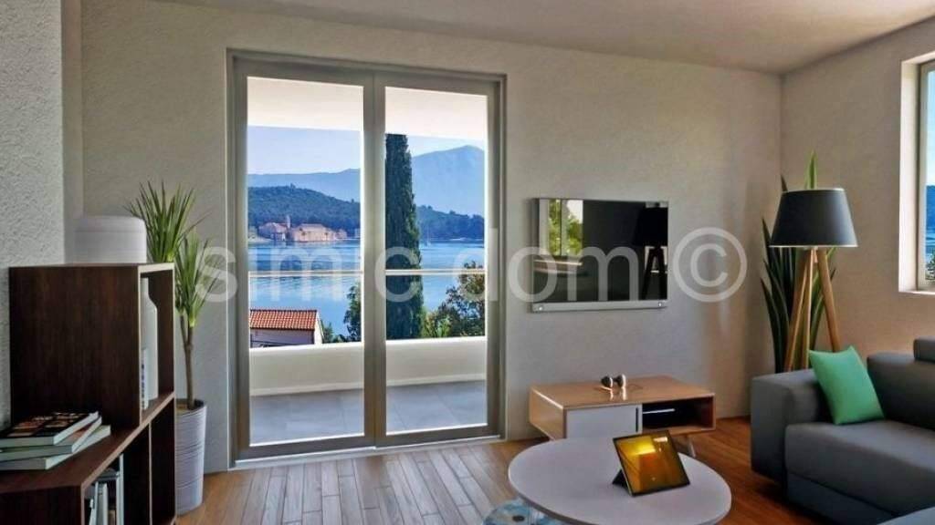 Zum Verkauf steht eine wunderschöne, kürzlich fertiggestellte und sehr geräumige Wohnung in außergewöhnlich ruhiger Lage in einer kleinen Bucht nahe der Stadt Korcula. Die Wohnung erstreckt sich über die erste und zweite Etage eines Gebäudes, das ansonsten nur über 4 Wohnungen verfügt. Die Gesamtnettofläche beträgt 138 m und umfasst das Innere der Wohnung (Schlafzimmer, zwei Badezimmer, überdachter Eingang, beeindruckendes Wohnzimmer mit Küche und Esszimmer, Abstellraum) und sehr reichhaltige Außenbereiche: Gärten, zusätzlicher Abstellraum, Balkon, Terrasse, Garagenplatz und Außenstellplatz. Das Gebäude selbst ist sehr gut konstruiert und die Auswahl ausschließlich geprüfter Materialien garantiert Langlebigkeit und eine hohe Benutzerfreundlichkeit. Die Wohnung bietet einen wunderschönen Blick auf das Meer und das Meer selbst ist weniger als 5 Minuten zu Fuß entfernt. Alle Annehmlichkeiten sind auch im nahegelegenen Korcula verfügbar, das etwa 10 Minuten zu Fuß entfernt ist. Der Investor ist eine juristische Person und der Preis beinhaltet die Mehrwertsteuer. Die Eigentumsverhältnisse sind in Ordnung.