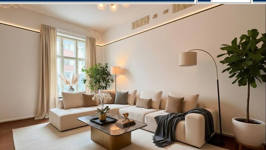 Schon das Entrée des Hauses macht Eindruck. Kunstvolle Verzierungen, ein Hauch von Geschichte und genau dieses Gefühl, das guten Altbau von bloßer Altsubstanz unterscheidet. Das Licht fällt angenehm durch große Fenster, die Räume wirken ruhig und klar. Eine Qualität, die sich in Fotos nur andeutet und erst vor Ort wirklich entfaltet.