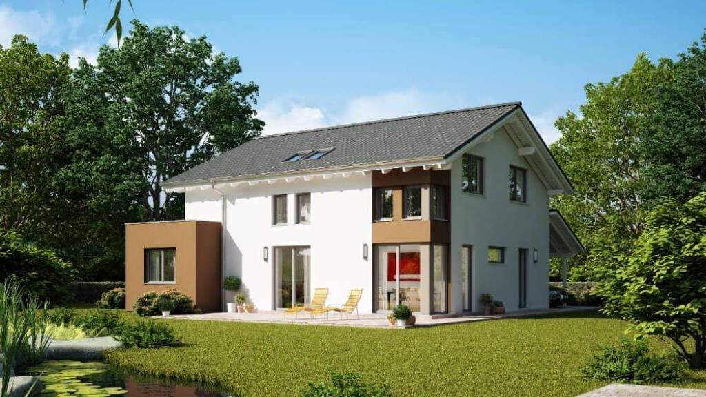 Auch beim größten EVOLUTION Einfamilienhaus steht wieder die enorm große Vielfalt und eine maximale Individualität im Vordergrund. Von klassisch über repräsentativ bis zu ganz modern ist alles möglich, um ein EVOLUTION 165 zu einem echten Einzelstück zu machen. Neben der Entscheidung für eine der vier Dachformen beeinflussen dabei die vielen zur Verfügung stehenden Architektur-Bauteile, die Vielfalt bei der Fassadengestaltung und die Farben der Fenster sowie Dachsteine maßgeblich das Design des Hauses.