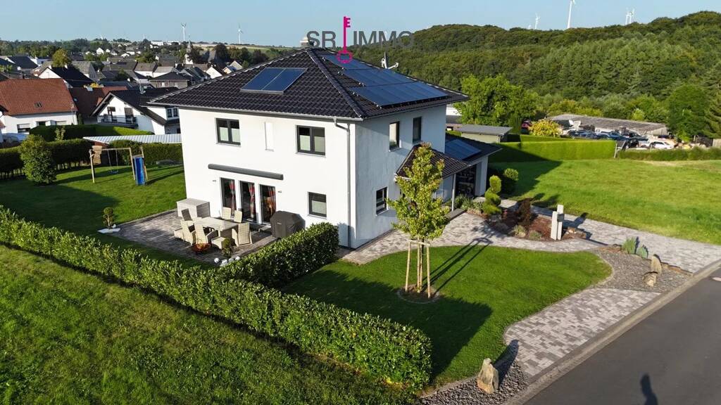Dieses freistehende Einfamilienhaus aus dem Jahr 2011 präsentiert sich in einem Zustand, der an einen Erstbezug erinnert - Fassade, Dach und Außenanlagen wirken makellos und vermitteln bereits beim Betreten des Grundstücks das Gefühl eines Neubaus.