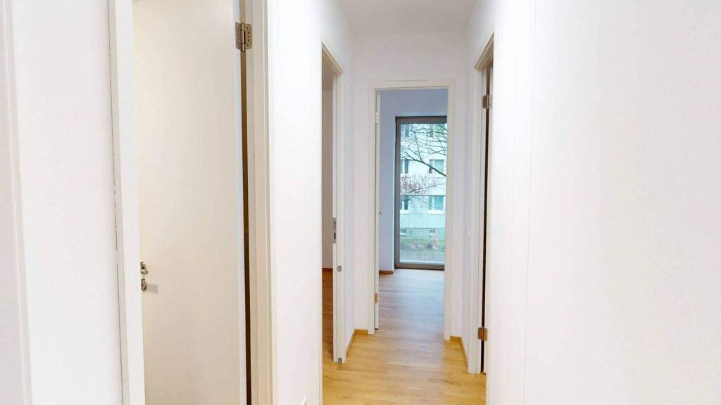 Einen wundervollen Platz zum Schlafen, zum Arbeiten oder zum Spielen bieten die drei Schlafzimmer der Wohnung. Wie auch in den übrigen Räumlichkeiten der Immobilie wurde auf der Bodenfläche der Schlafzimmer ein schöner Designboden in einer hellen Holzoptik verlegt.