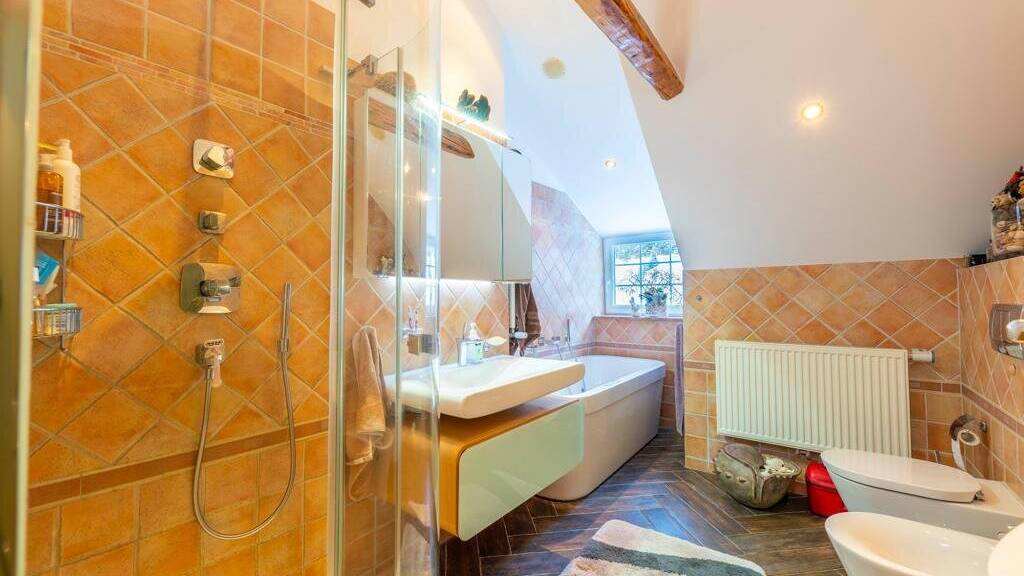 * Gäste-WC und luxuriöses Badezimmer mit Dusche und Massage-Badewanne.