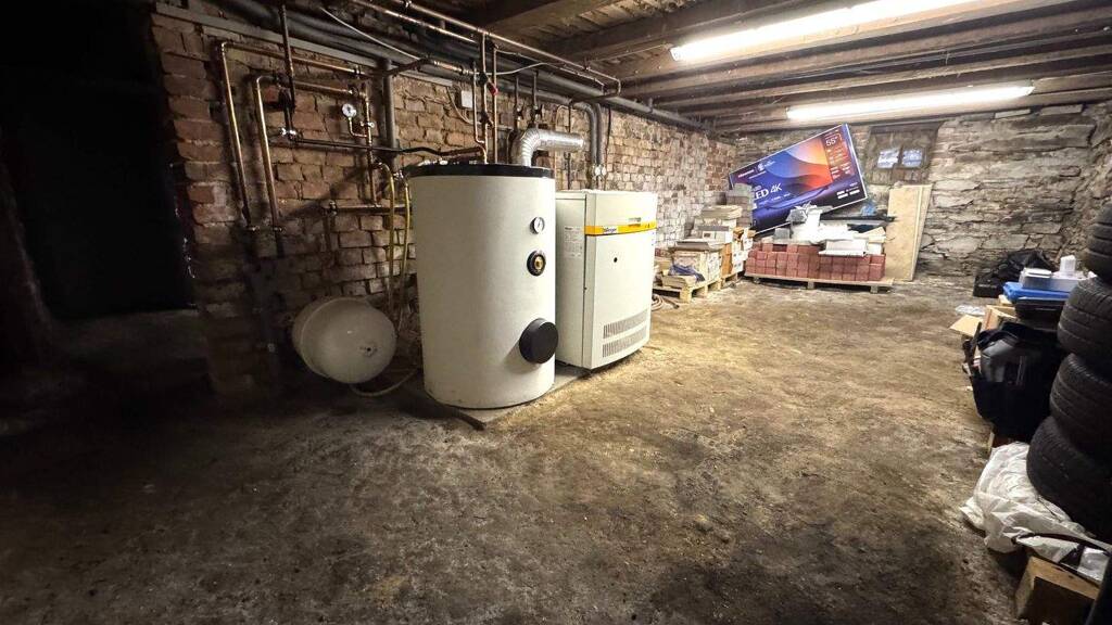Beim Betreten des Vorderhauses empfängt Sie eine einladende, kleine Diele, mit angeschlossenem Gäste WC. Die Erdgeschosswohnung bietet ein helles Wohnzimmer, zwei Schlafzimmer, Küche und Duschbad – ideal für Paare oder kleine Familien. Die Maisonette-Wohnung im Ober- und Dachgeschoss beeindruckt mit offenem Essbereich, Wohnzimmer mit Holzofen, Balkon, Küche und Badezimmer mit Badewanne und Dusche. Über eine Treppe gelangen Sie ins Dachgeschoss mit großem Studio und begehbarem Kleiderschrank. Der voll unterkellerte Bereich des Hauses bietet Heizungsraum, Abstellfläche sowie Büro, Homeoffice und Werkstatt im Anbau – vielseitig nutzbar für Arbeit, Hobby oder Lager.