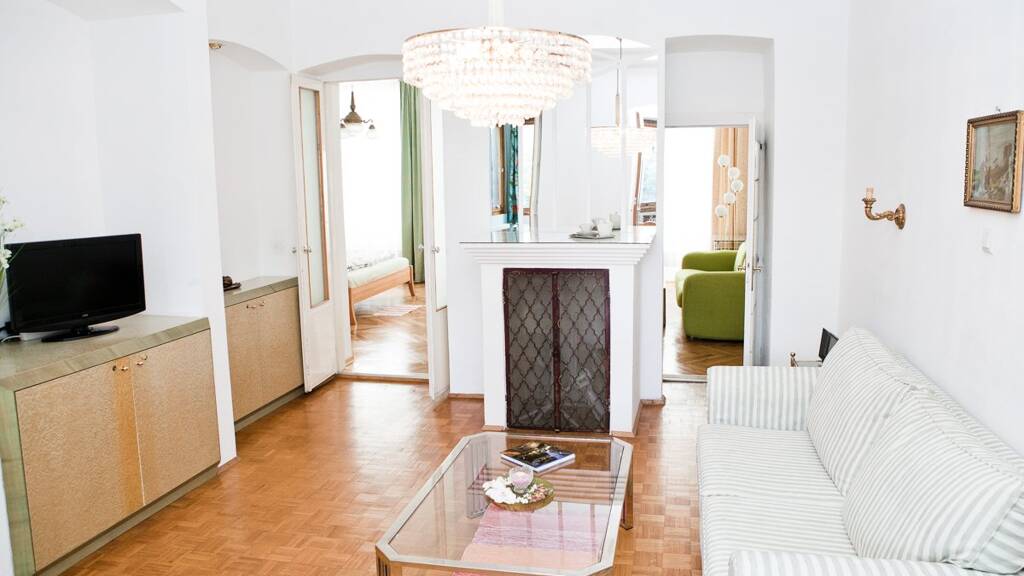 Die Wohnung (ca. 75 m2) verfügt über ein ca. 20 m2 großes Wohnzimmer mit ausziehbarem Box Spring Sofa, internationalem Kabel TV und DVD Player. Es ist ebenso wie die beiden geräumigen Schlafzimmer mit Parkett ausgestattet. Das Fliesenbad verfügt über Badewanne und Dusche sowie eine Waschmaschine. Das WC ist extra.
