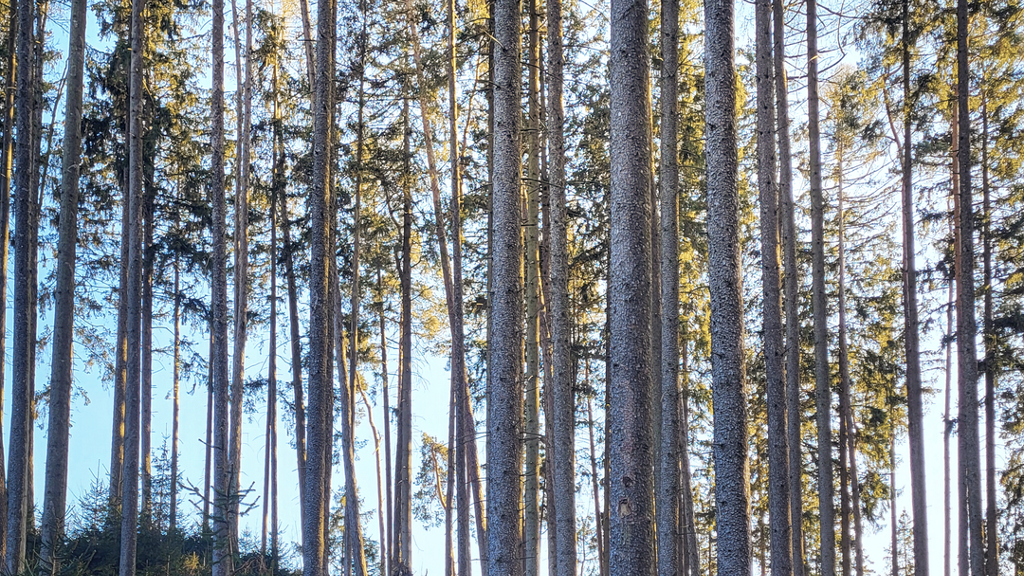 Bei dieser Waldfläche handelt es sich um einen Bestand mit Hochholz aus Fichten und Lärchen, ergänzt durch eine Aufforstung mit Lärchen, Eichen und Elsbeeren. Diese Mischung vereint wertvolles Nadelholz mit langlebigen Laubhölzern und schafft eine vielfältige, stabile und nachhaltige Bewaldung.