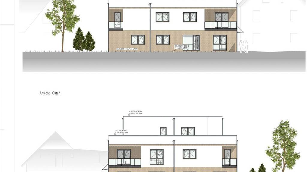 Bebauung: Die Baugenehmigung umfasst ein Mehrfamilienhaus mit 10 Wohneinheiten, 2 Stockwerken und einer Stellplatzanlage für 10 Pkw. Die moderne Architektur passt sich optimal an die bestehende Bebauung im Umfeld an und bietet ausreichend Wohnraum.