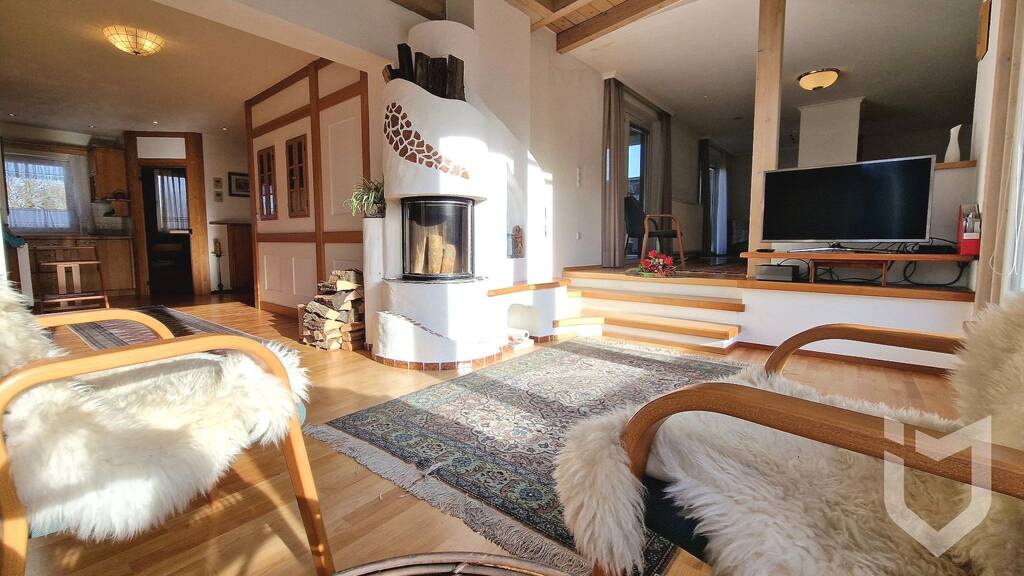 Die hochwertige Ausstattung des Hauses zeugt von erstklassiger Handwerkskunst. Die hochwertigen Böden der Immobilie sind mit Stein, Fliesen und Parkett ausgestattet. Ein besonderer Blickfang ist der gemütliche Kaminofen zwischen Wohn- und Wellnessbereich, der für eine gemütliche Atmosphäre sorgt. Zudem bieten noch zusätzliche Kaminzüge im Haus die Möglichkeit für weitere Heizquellen. Als Hauptheizung dient eine Zentralheizung mit Radiatoren und elektrischer Fußbodenheizung, welche von der im Jahr 2018 erneuerten Gasheizung gespeist wird. Die Küchenbereiche sind mit Marken- Einbauküchen ausgestattet und bleiben im Objekt.