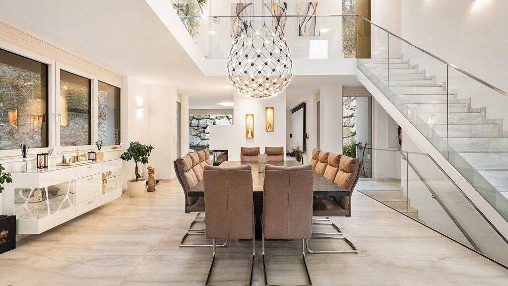 Bereits beim Betreten empfängt Sie eine großzügige Eingangshalle, die den exklusiven Charakter dieses Hauses eindrucksvoll unterstreicht und einen stilvollen Rahmen für Familie und Gäste bietet. Hochwertige Materialien, eine durchdachte Raumplanung und eine ruhige Farbgestaltung verleihen der Immobilie zeitlose Eleganz.