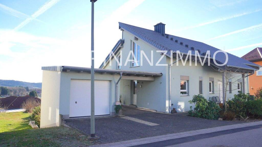 Dieses hochwertig ausgestattete Wohnhaus mit Einliegerwohnung wurde 2000/2001 in zeitloser Architektur erbaut und präsentiert sich in neuwertigem, absolut gepflegtem Zustand. In 2025 wurde das komplette Pultdach neu eingedeckt und eine 18 cm dicke Aufdachdämmung angebracht. Die Regenrohre wurden ebenfalls komplett erneuert. In 2018 wurde die Fassade gestrichen, der Innenanstrich vor 3 Jahren. Durch den hellen Eingang des Hauses betreten Sie die Hauptwohnung mit 143 qm Wohnfläche. Diese erstreckt sich über 2 Etagen mit individueller Raumaufteilung. Der großzügige und lichtdurchflutete Wohn- und Essbereich (ca. 54 qm) mit hoher Raumhöhe und Galerie liegt auf der Südseite des Hauses. Die Galerie ist vom Obergeschoss begehbar. Durch die bodentiefen Fensterelemente gelangen Sie auf die überdachte Terrasse (3 x 12 m), die zu entspannten Stunden im Freien einlädt. Von der Terrasse erreichen Sie über eine Treppe den schön angelegten Garten. Die Einbauküche mit Vorratsraum ist durch eine Glasschiebetür abgetrennt. Auf dieser Etage befindet sich noch ein Gäste WC mit Dusche und ein praktischer Hauswirtschaftsraum. Eine Außentür bietet Zugang zum Carport. Direkt nebenan ist die Garage, die zusätzlich unterkellert wurde und dort können viele Gartengeräte, Grill etc. untergebracht werden. Die Räume im Obergeschoss des Hauses haben zusätzliche Oberlichter, die viel Helligkeit und Tageslicht bringen. Im Obergeschoss sind das Schlafzimmer, das Kinderzimmer und das Bad mit Badewanne, Dusche und Bidet. Das Untergeschoss überzeugt durch den Charme einer Einliegerwohnung mit eigenem Duschbad (ca. 90 qm) und ist derzeit vermietet. Beheizt wird das Haus über eine Ölheizung und Warmwasser wird durch eine Solaranlage gebildet. Das Raumklima wird durch eine automatische Be- und Entlüftung kontrolliert. zusätzliche Highlights: Smart Home, zentrale Staubsaugeranlage im EG und OG, eine Alarmanlage wurde vorgerichtet. Mobiliar, Gartengeräte und Beleuchtung können mit übernommen werden