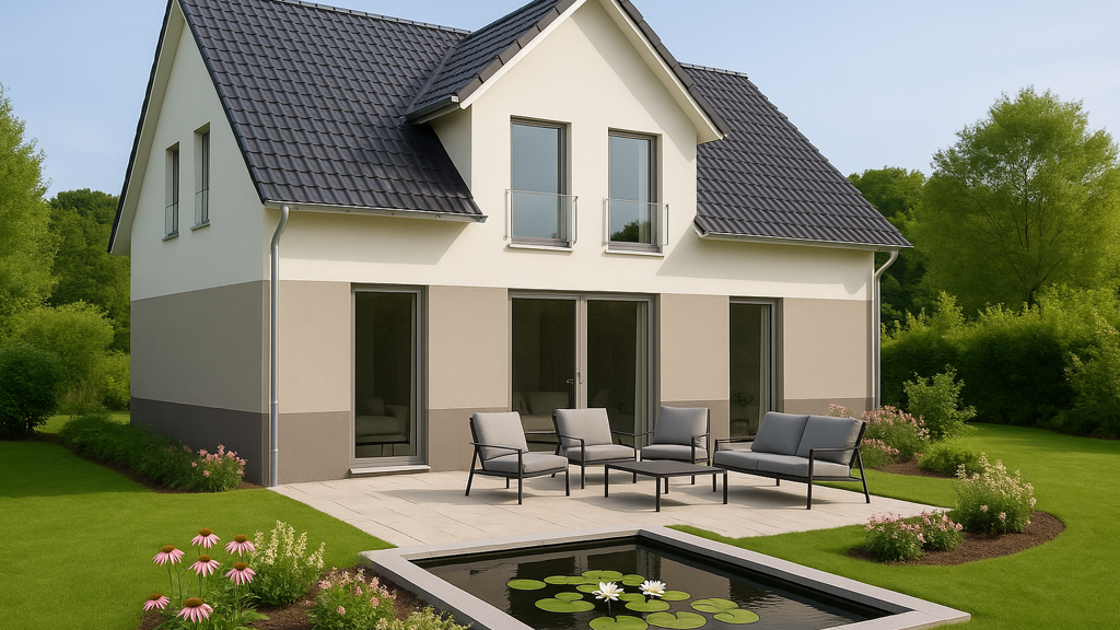 inklusive Einreichplan, Energieausweis, Fundamentplatte, Rollläden, moderner Luft-Wasser-Wärmepumpe & Fußbodenheizung