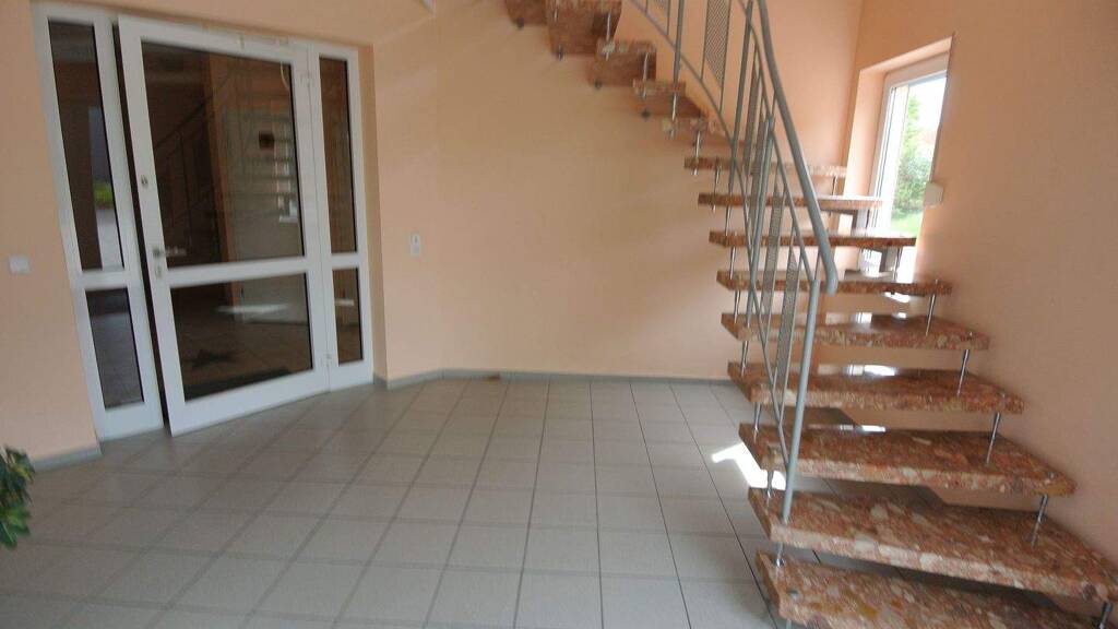 Die modernen lichtdurchfluteten Büroflächen werden über ein repräsentatives Treppenhaus erschlossen. Sie sind mit Fliesenbodenbelag im EG und Teppichboden im I. OG ausgestattet. Brüstungskabelkanäle und abgehängte Decken sind vorhanden.