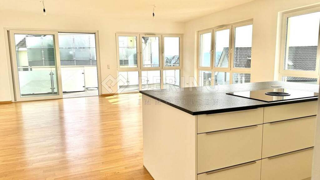 Ein besonderes Highlight der Wohnung ist der großzügige Wohn-/ Essbereich und offener Küche mit Zugang zur Balkonterrasse mit Blick über den Giersberg.