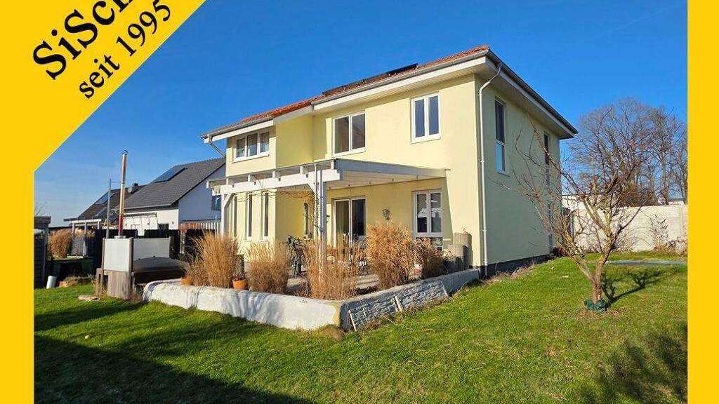 Diese moderne, großzügige Stadtvilla aus dem Baujahr 2015 überzeugt als exklusives Architektenhaus mit klarer Formensprache und hoher Wohnqualität. Auf ca. 185 m² Wohnfläche bietet sie lichtdurchflutete Räume, offene Blickachsen und eine durchdachte Grundrissgestaltung für anspruchsvolles Wohnen. Das 781 m² große Grundstück in Südausrichtung schafft Privatsphäre und Platz für Entspannung. Eine flächendeckende Fußbodenheizung sorgt ganzjährig für angenehmen Wohnkomfort. Der beheizbare Hot-Tub lädt zu erholsamen Stunden im eigenen Garten ein. Die familienfreundliche Lage mit Sackgassencharakter garantiert Ruhe, Sicherheit und ein angenehmes Wohnumfeld für Sie und Ihre Kinder. Diese Immobilie vereint zeitgemäße Architektur, großzügige Flächen und besondere Ausstattungsmerkmale zu einem stilvollen Zuhause für Familien und Paare mit Sinn für Qualität und Design.