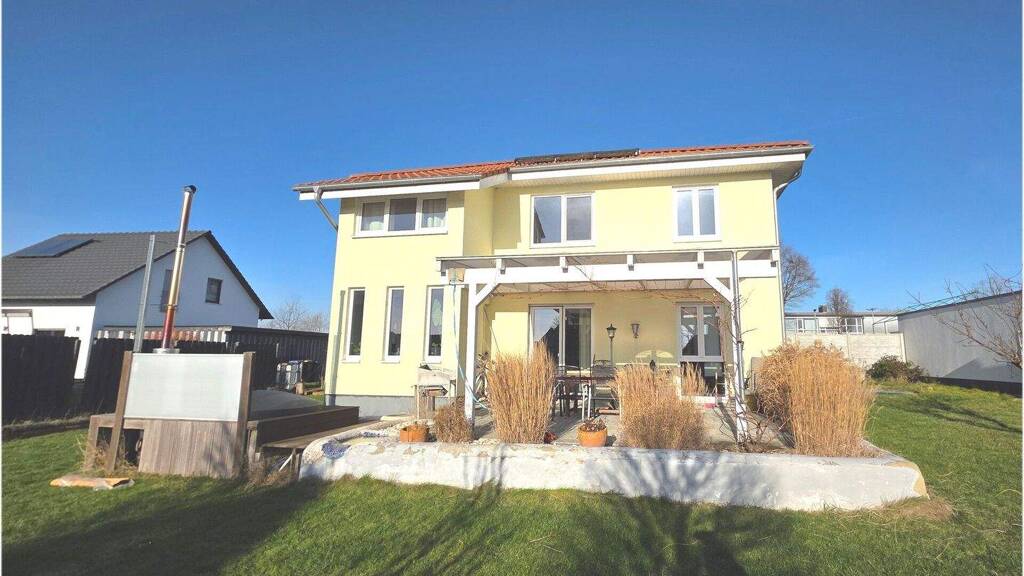 - Baujahr 2015 in Massivbauweise - Energieeffiziente Bauweise mit guter Wärmedämmung - Moderne Küche mit Marken-Elektrogeräten (optional) - Großzügiger Wohn- und Essbereich mit offener Raumgestaltung - Hochwertige Designerfußboden - Fußbodenheizung in allen Wohnräumen - Dreifach verglaste Fenster - Großzügiges Tageslichtbad mit Badewanne und Dusche - Schlafzimmer mit begehbarer Ankleide - Gäste-WC - Hauswirtschaftsraum mit separater Duschmöglichkeit - Glasfaser - Moderne Gasbrennwertheizung mit 500 l Speicher - Solarthermie auf Südseite des Daches - Videoüberwachung - Wasserenthärtungsanlage - Überdachte Terrasse in Südausrichtung - Hot Tub mit Ofenheizung - Bodentrampolin - 2 x Stellplätze (Vorbereitung für Carport) - Wallbox für Ladung E-Auto - Abstellraum für Gartengeräte und Fahrräder