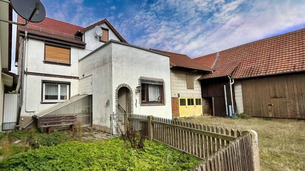 In dem idyllischen Warza, einem Ortsteil der Gemeinde Nesstal, bieten wir ein Einfamilienhaus, mit einer Wohnfläche von ca. 120m² auf einem großzügigen Grundstück von 1.141m², an. Das, wie ein Vierseitenhof angelegte Areal besteht u.a. aus einem Fachwerkhaus aus dem Jahr um 1915. Die letzte Modernisierung datiert aus dem Jahr 2003. Es bietet viel Potential für eine individuelle Sanierung. Zum Objekt gehört eine große Scheune, die Platz für mindestens zwei Fahrzeuge bietet. Eine kleine Werkstatt und mehrere Lagerräume sind ebenfalls vorhanden. Auf dem gepflasterten Hof finden mehrere PKW´s einen Stellplatz. Das Objekt verfügt über eine Teilunterkellerung in dem die Öltanks untergebracht sind. Im Erdgeschoß befinden sich neben der Diele, der Küche und dem Flur zwei Zimmer sowie ein Gäste WC und ein Bad mit bodentiefer Dusche. Im Dachgeschoß sind drei weitere Zimmer und eine Küche untergebracht. Von der Diele gelangen Sie auf die großzügig geschnittene Terrasse. Hinter dem Haus sowie den Anbauten erwartet sie ein großer Garten. Aufgrund des Zuschnittes des Grundstückes könnten Sie auch über einen Teilabriss der Nebengebäude und einem Neubau nachdenken. Das Haus ist leerstehend und kann zeitnah bezogen werden.