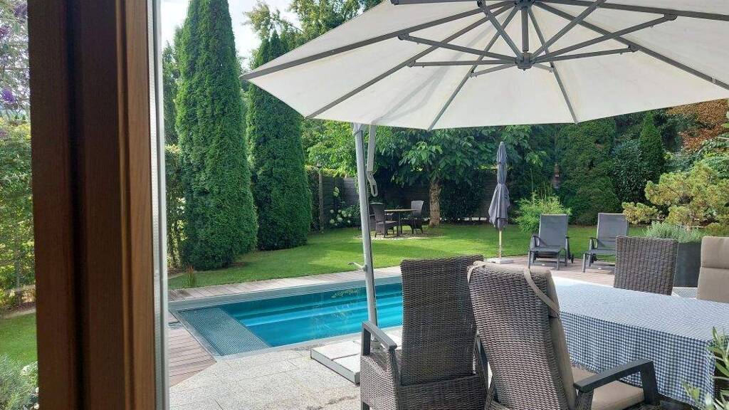 Technisch top, minimaler Aufwand: Wärmepumpe, Solaranlage, moderne Haustechnik. Dazu Doppelgarage, liebevoll gestalteter Garten, Edelstahlpool mit Gegenstromanlage. Kurzum: Alles, was man für ein stilvolles Leben zwischen Architektur, Wasser und Bergen braucht.