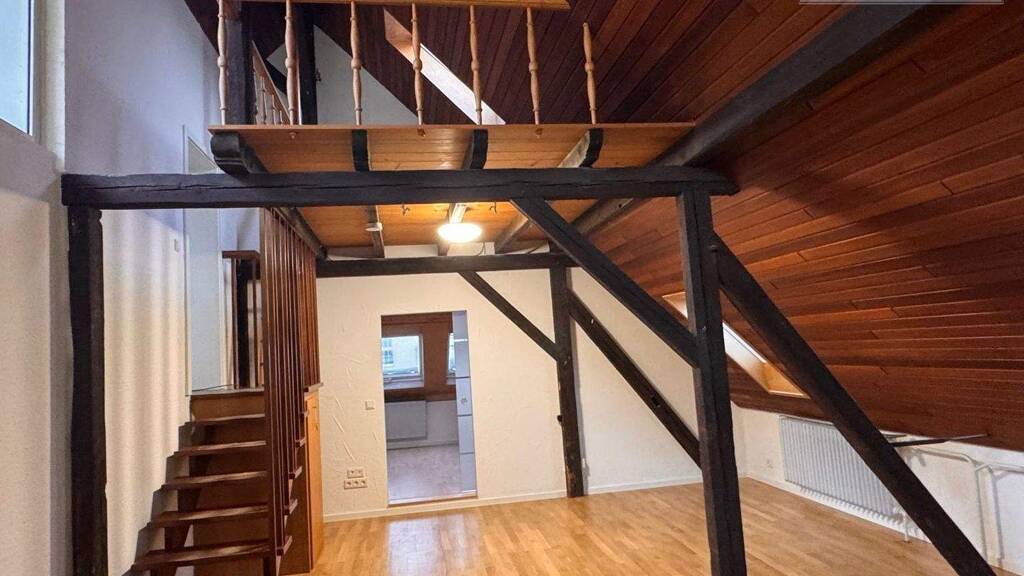 Wohnzimmer, Küche mit Einbauküche und Platz für einen Esstisch, modernisiertes Badezimmer ,Schlafzimmer als Galerie.