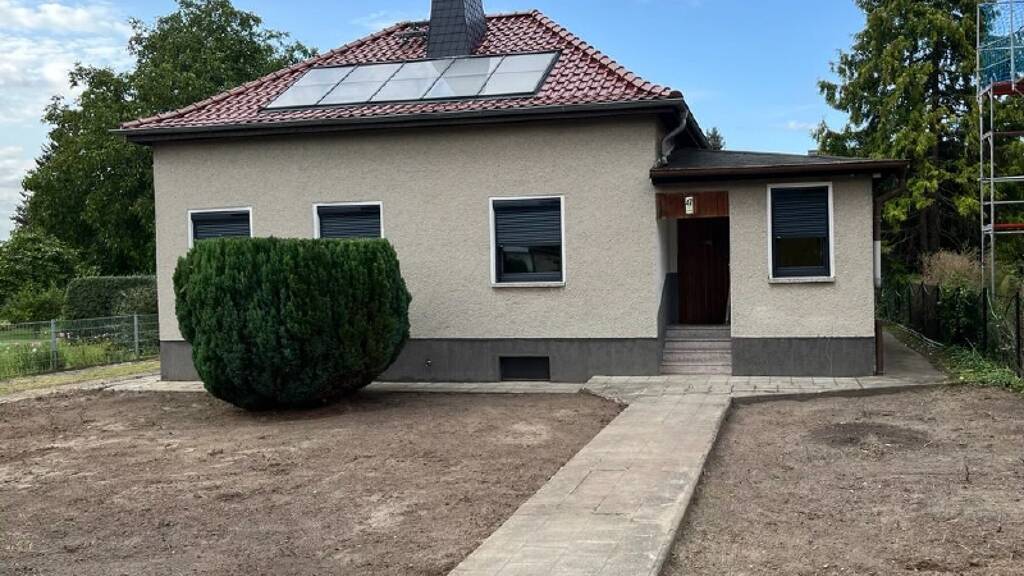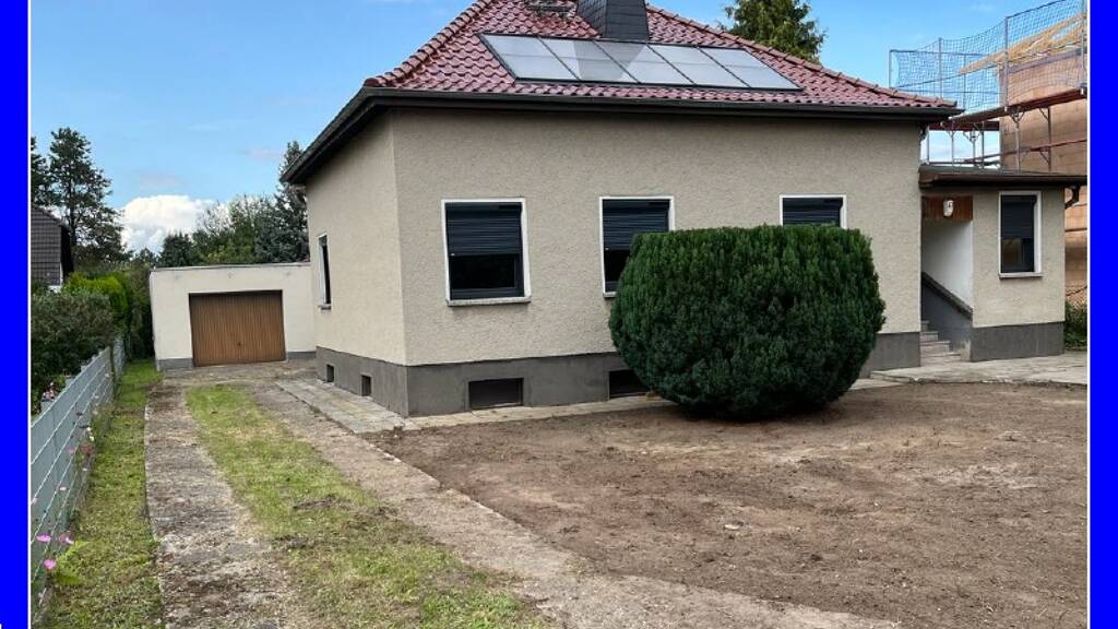 Auf dem ca. 584 m² großen, vorderen Grundstück in ruhiger, familienfreundlicher Wohnlage mit guter Infrastruktur befindet sich das 1936 errichtete, massiv gebaute Einfamilienhaus. Es weist einen solidem Zustand auf und verfügt über eine Wohnfläche von ca. 86,5 m², verteilt auf drei Zimmer, eine geräumige Küche, Flur und Badezimmer. Das bestehende Wohnhaus bietet vielseitige Erweiterungsmöglichkeiten, um Zimmeranzahl und Wohnfläche dem Bedarf entsprechend zu vergrößern. Sowohl der Dachboden als auch die an das Haus angebaute Werkstatt bieten Potenzial für einen Ausbau und somit die Schaffung weiterer Wohnfläche. Das Haus ist vollständig unterkellert. Mit einer Deckenhöhe von 1,90 m ist der Keller nicht als Wohnfläche nutzbar, kann jedoch optimal als Lager-, Hobby- oder Hauswirtschaftsraum dienen. Er weist leichte Feuchtigkeitsschäden auf, was bei einer Nutzung als Lagerfläche jedoch kein Hindernis darstellt. Das Grundstück entsteht durch Herausmessen aus einem größeren Areal. Die Erschließung des entstehenden hinteren Grundstücks erfolgt über ein 3 Meter breites Geh-, Fahr- und Leitungsrecht auf der von der Straße gesehen linken Grundstücksseite. Auf der geplanten Teilungsgrenze befindet sich ein massives Nebengebäude, das eine Garage und ein Sommerhaus umfasst und abgerissen werden muss. Die dafür entstehenden Kosten sind von den Erwerbern des hinteren Grundstücks zu tragen. Bei Interesse kann auch das gesamte Grundstück mit einer Größe von 1.084 m² erworben werden. Ausführliche Informationen erhalten Sie gern über unser Büro!