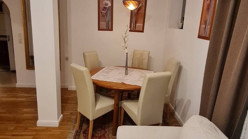 Voll möblierte 3 Zimmer Wohnung in Mainaschaff. 4 km nach Aschaffenburg, 35 km nach Frankfurt, 5 geh Minuten zum Bahnhof mit direkter Anbindung nach Darmstadt, Wiesbaden und Aschaffenburg. Einkaufsmöglichkeiten gegenüber, Bushaltestelle vor der Tür. Zum Wald, Spielplatz, Badesee, Schule und Kindergarten nur wenige Minuten zu Fuß zu erreichen
