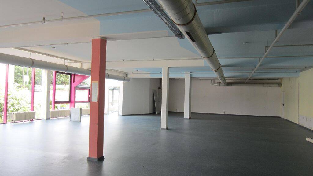 Aufteilung: Große Verkaufsfläche (ca. 270 m²) mit einem Büro ( ca. 32 m²), einer Teeküche (ca. 12 m²) und einer WC-Anlage (ca. 3 m²).