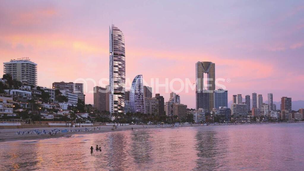 Die Wohnungen haben eine hervorragende Lage direkt an der Promenade und dem Strand von Benidorm. Der Komplex wird mit Einrichtungen wie Fitness, Pools, Gärten usw. 2026 übergeben.