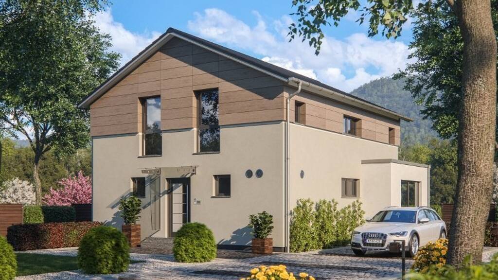 Das Äußere des Einfamilienhauses Life 148 überzeugt durch seine zweigeteilte, elegante Fassadengestaltung.